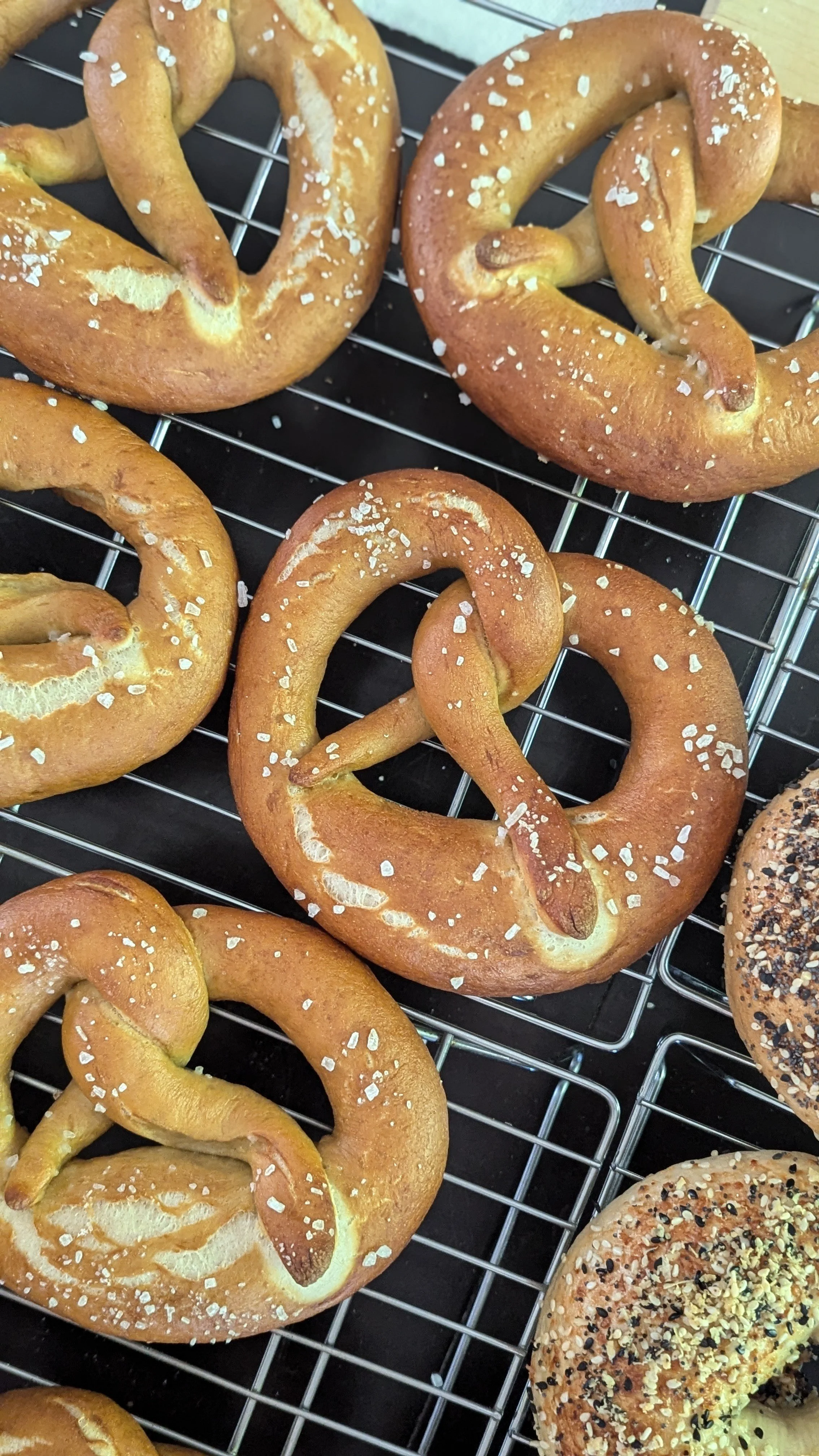 Hand-shaped soft pretzels that are topped with your choice of coarse sea salt or cinnamon sugar.
